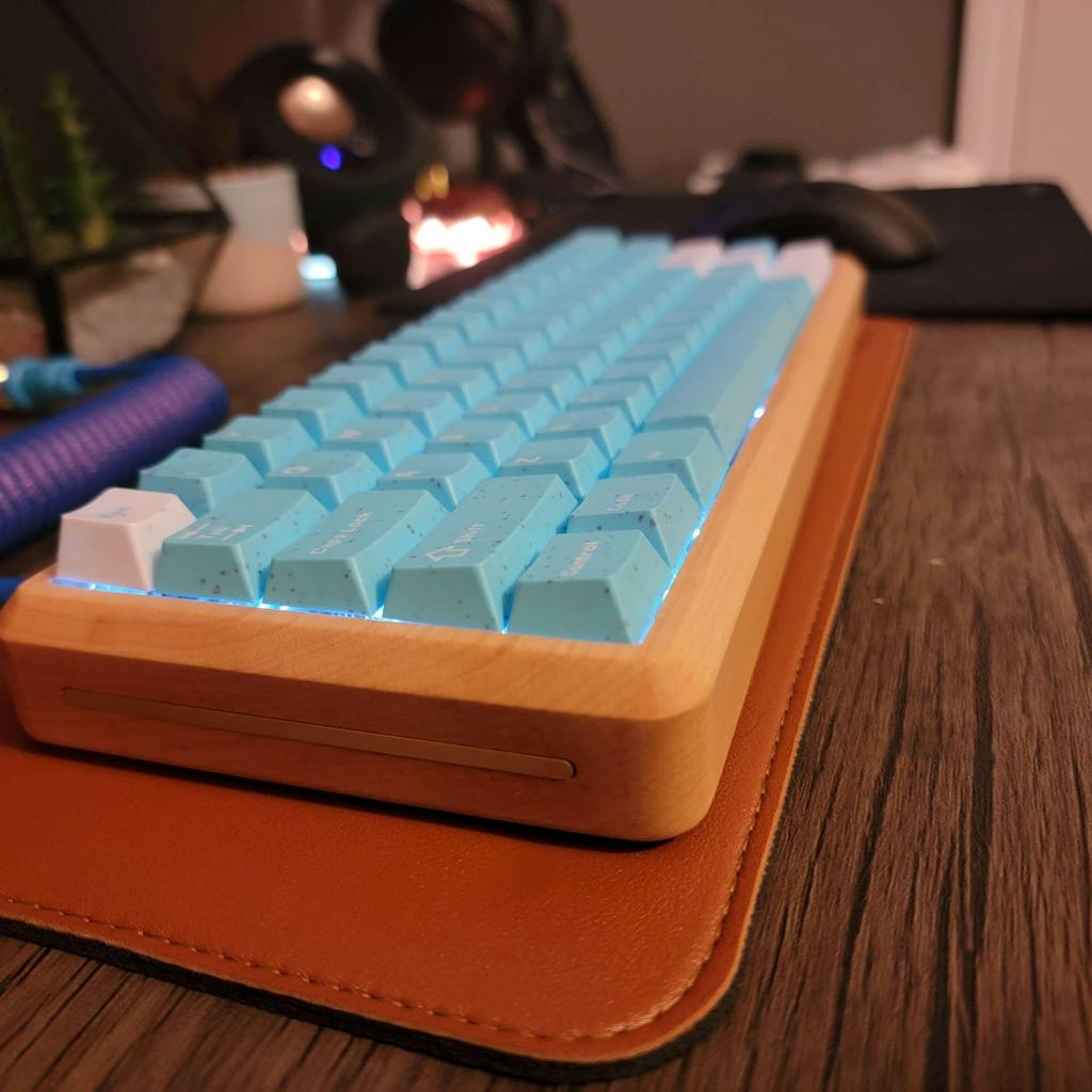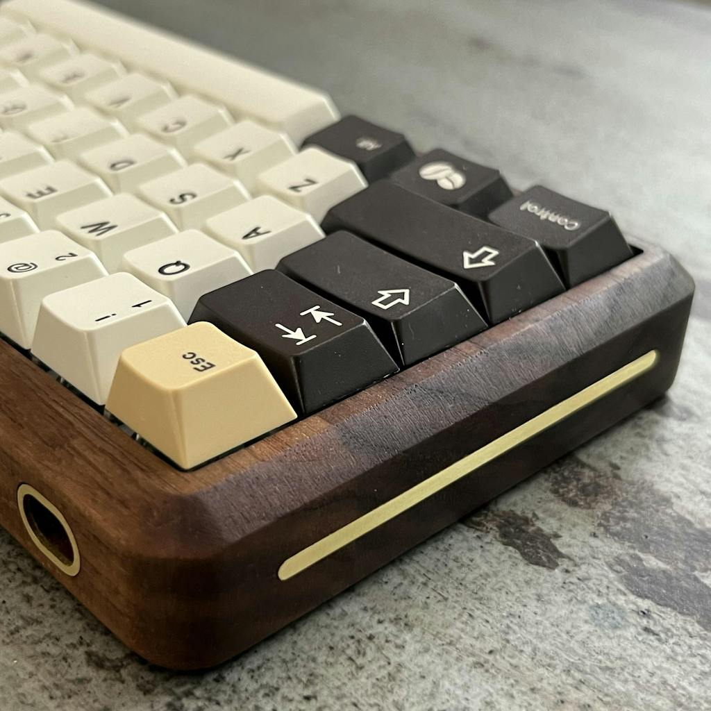 A+ quality overall. This case inspired my first 60% build (DZ60RGBv2), I'm happy how it turned out. I opted for Walnut / Chamfered / Brass: the walnut feels awesome, great job sanding on all edges. Mounts are sturdy and in the right spots, the metal inlay for the cable is a nice touch. The brass accents on the sides of the case aren't fully flush with the wood, not a criticism but adds texture - I find myself fidgeting with it, it's satisfying. Looking forward to a TKL or 1800 case!
