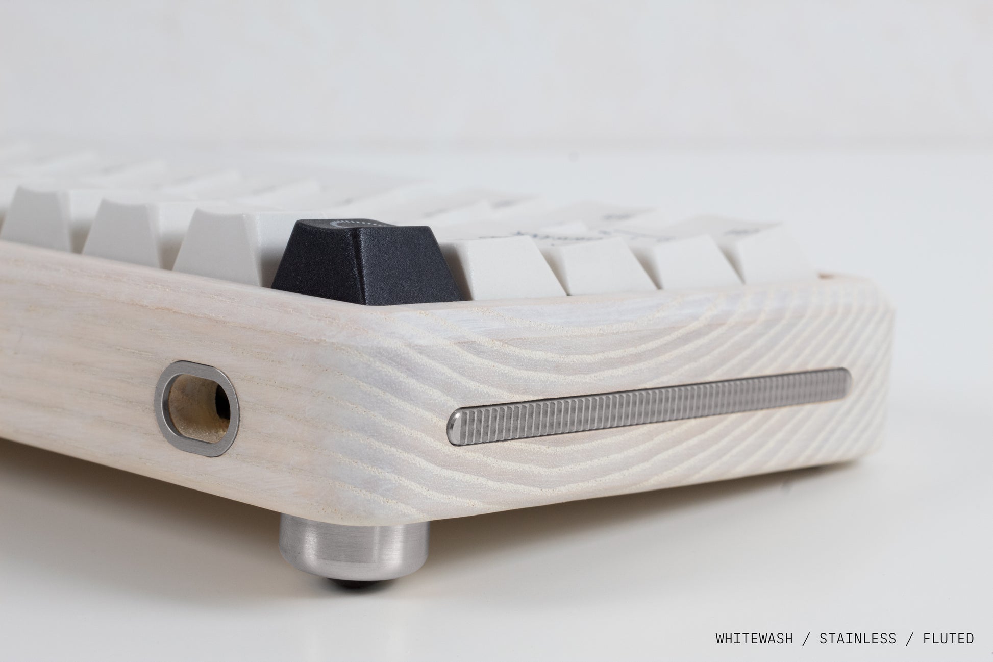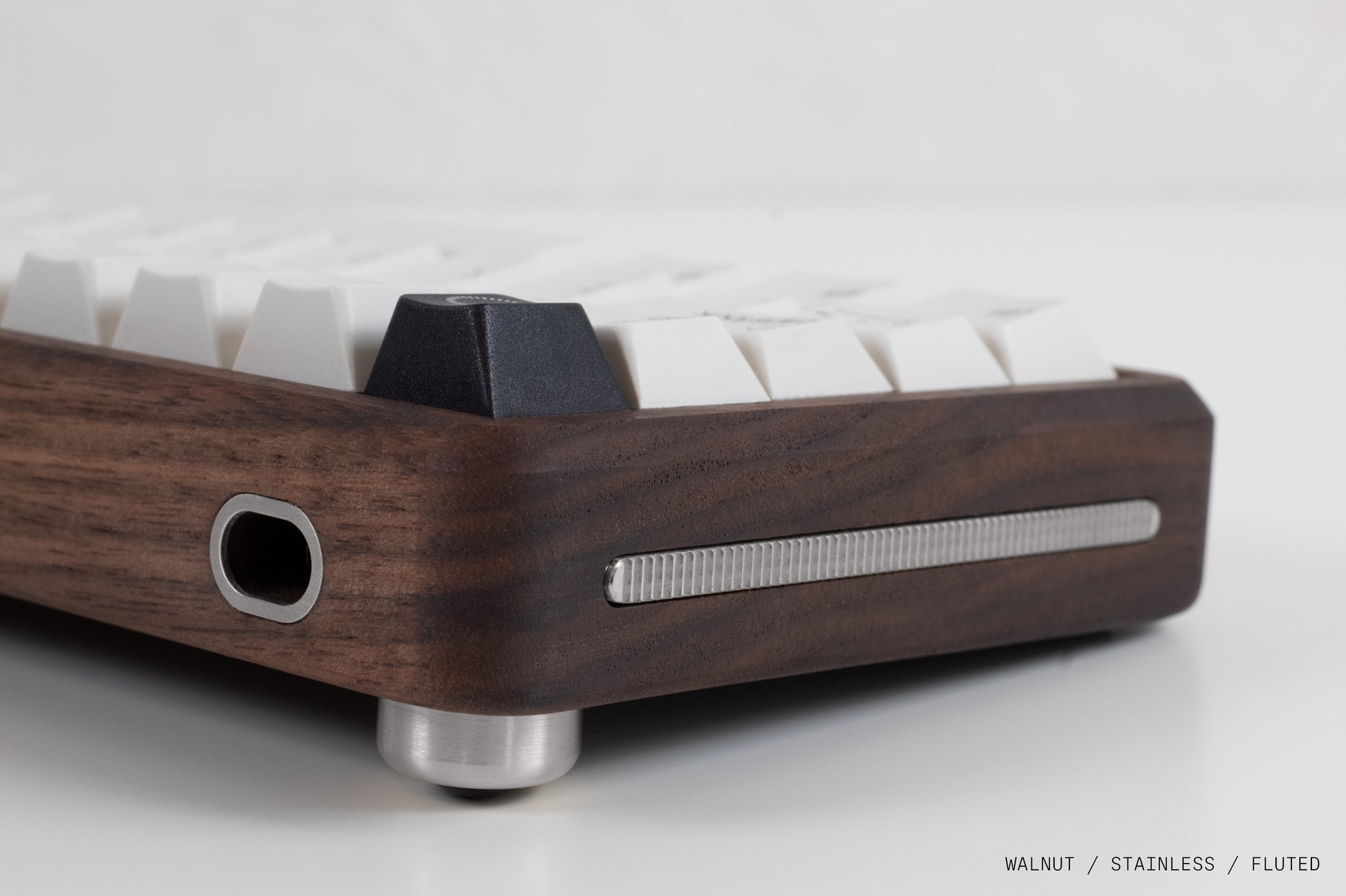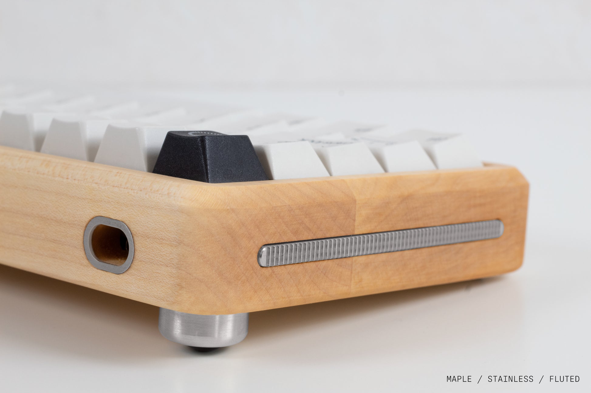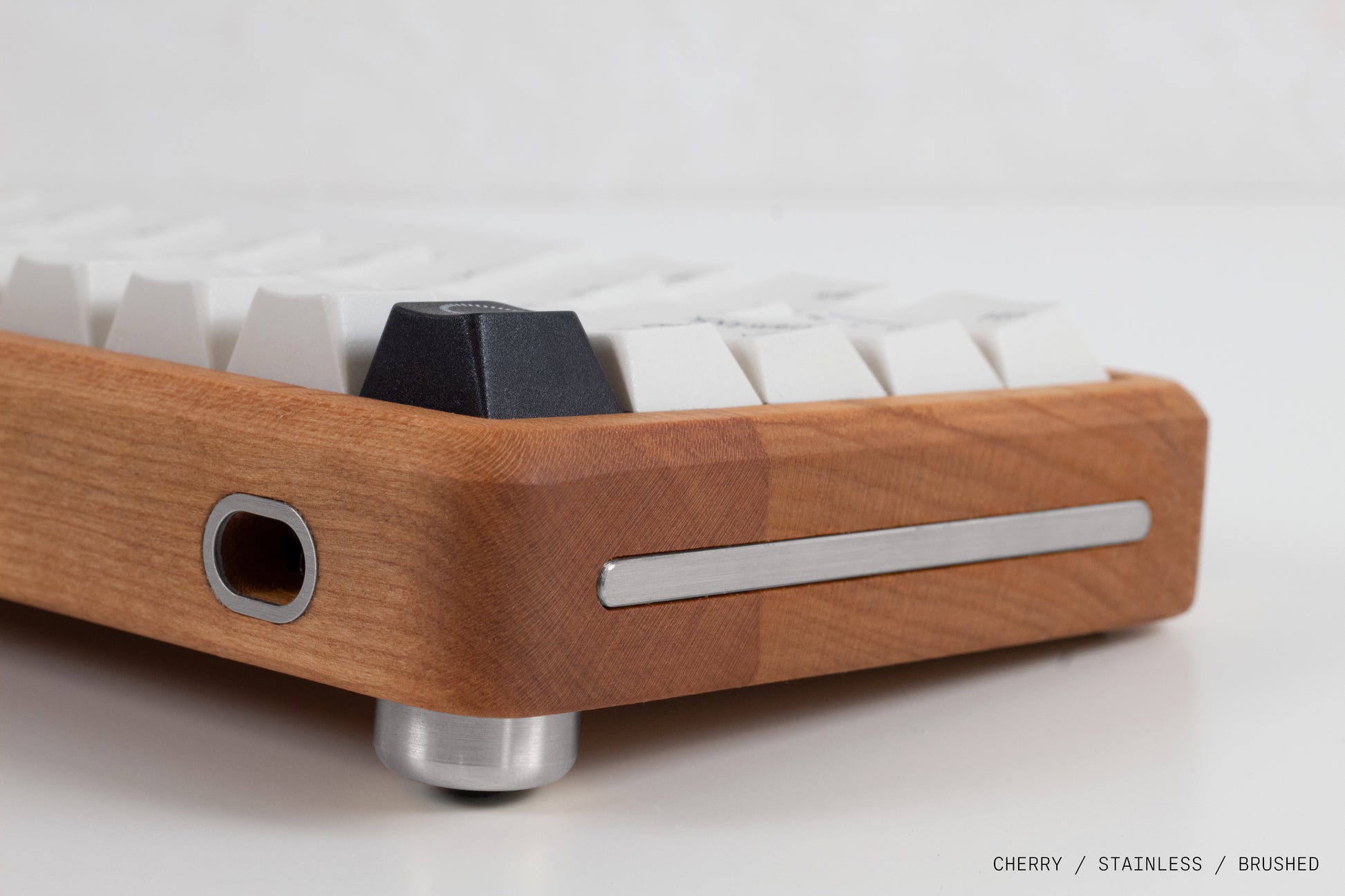 - The top edge profile for case customization has been streamlined to a chamfered finish. This ensures future compatibility with accessory items such as a macropad or numpad, without concerns about specific variations being in stock. This change also strengthens our brand language, with the chamfered top edge standing as both a customer favorite and a signature detail unique to our wood cases.