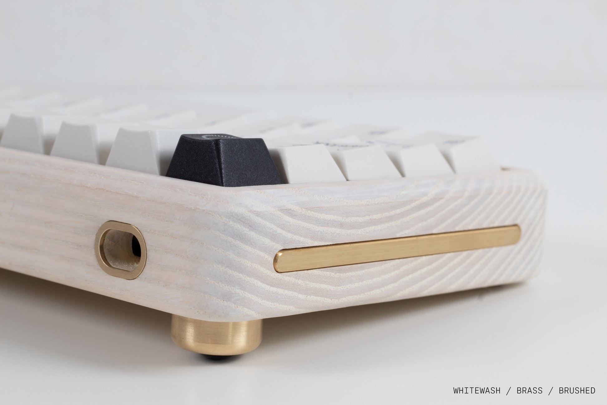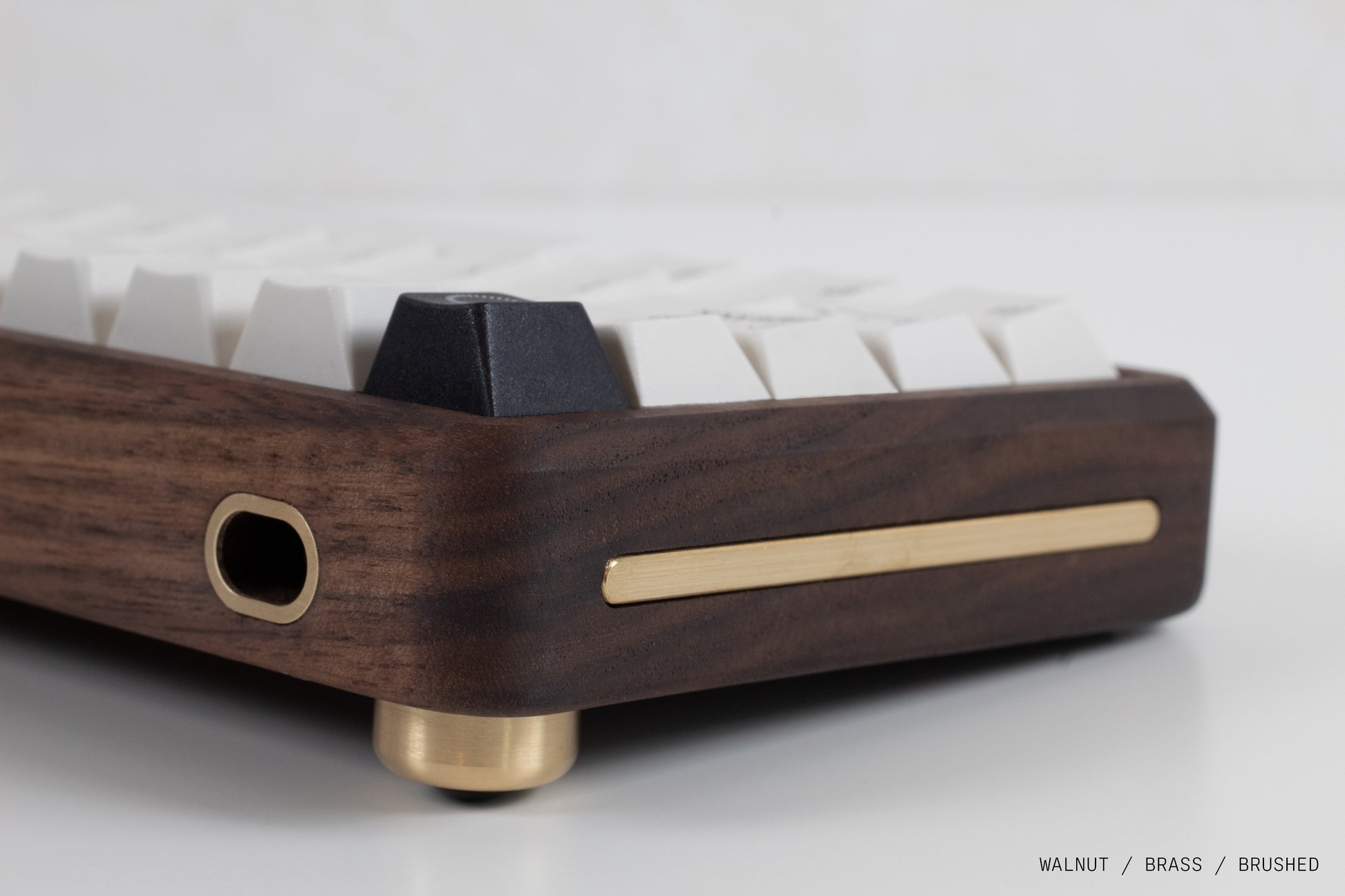 A premium 65% mechanical keyboard kit with an all-wood case and solid metal accents, featuring tons of customization options
